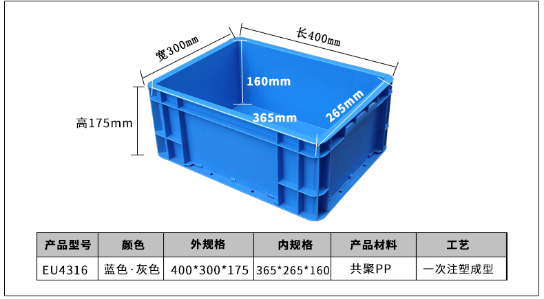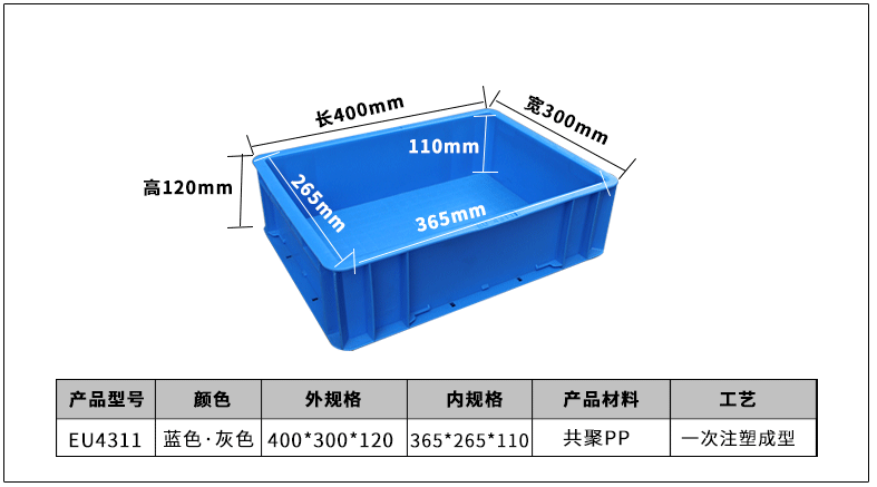 EU系列标准可堆式物流周转箱是TOYOTA(丰田)汽车公司在全球使用的欧洲标准物流箱。该系列产品选用100%全新高抗冲击性改性PP为原料、并运用先进的工艺和模具设备进行开发生产。由于本系列产品合理的设计、优质的品质、周转便捷、堆垛整齐、便于管理,同时又具有耐油、耐酸、耐碱、适应环境温度广(-25℃—+60℃)等优质特性,使其适用于企业物流中的运输、仓储、流通、加工制造等闭环回路配送系统,主要适用于丰田汽车主机厂及其配套单位。